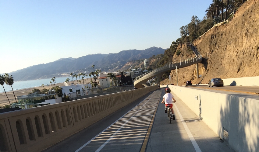 Later that afternoon, I wanted to go down to the beach so my son could swing on the rings. Driving was out; the beach-front parking lot costs money. I pumped up the tires on both our bikes, and we rode the mile and a half to the California Incline, the roadway that cuts down from the cliff to the water, then rolled along the Pacific Ocean, passing underneath the Santa Monica Pier—where we would not be stopping to buy ice cream we didn’t really want, or a sun hat we didn’t need.